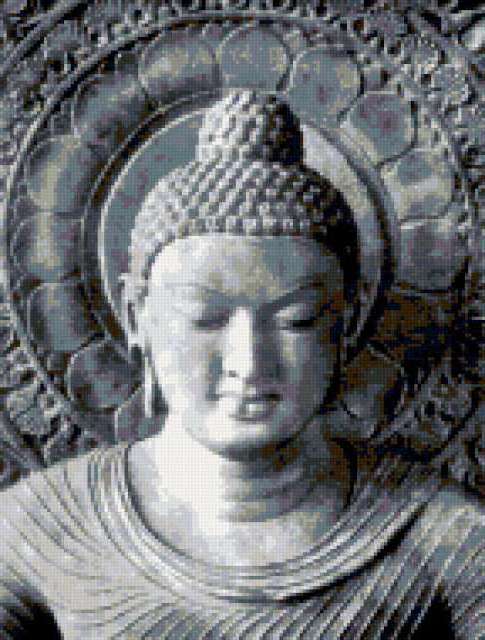 Ориентировочно так, схема вышивки «Будда», созданная автором olgaru66, будет выглядеть при отшиве на канве. Размер данной вышивки равен 144x190 крестов, при этом используется 16 цветов. Ключевые слова, по которым можно найти эту схему: будда, этно. Также, вы можете взглянуть на оригинальную картинку, соответствующую данной схеме вышивки.