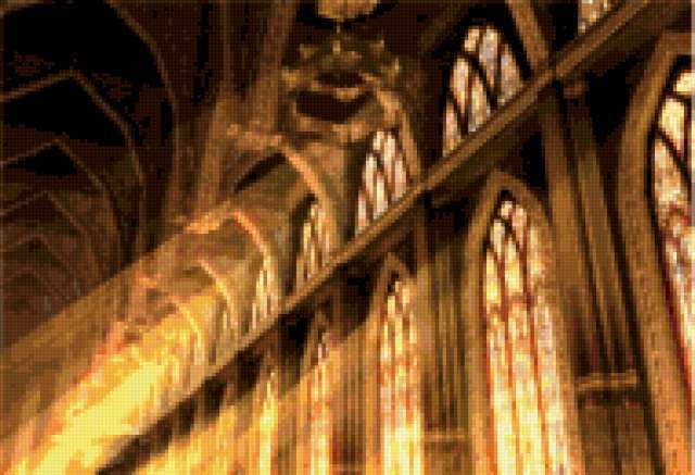 Ориентировочно так, схема вышивки «В монастыре», созданная автором solomka-rs, будет выглядеть при отшиве на канве. Размер данной вышивки равен 190x130 крестов, при этом используется 58 цветов. Ключевые слова, по которым можно найти эту схему: искусство. Также, вы можете взглянуть на оригинальную картинку, соответствующую данной схеме вышивки.