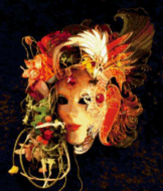 Ориентировочно так, схема вышивки «Венецианские маски», созданная автором Krista021, будет выглядеть при отшиве на канве. Размер данной вышивки равен 162x190 крестов, при этом используется 71 цветов. Ключевые слова, по которым можно найти эту схему: маска, венеция, лето, цветы, карнавал, маскарад, бал. Также, вы можете взглянуть на оригинальную картинку, соответствующую данной схеме вышивки.