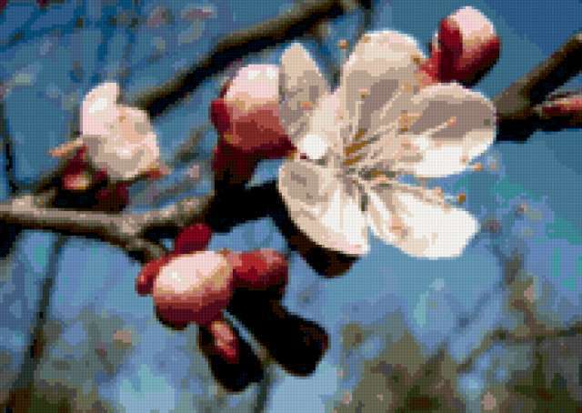 Ориентировочно так, схема вышивки «Весна», созданная автором burova, будет выглядеть при отшиве на канве. Размер данной вышивки равен 190x135 крестов, при этом используется 55 цветов. Ключевые слова, по которым можно найти эту схему: цветы, весна, природа. Также, вы можете взглянуть на оригинальную картинку, соответствующую данной схеме вышивки.