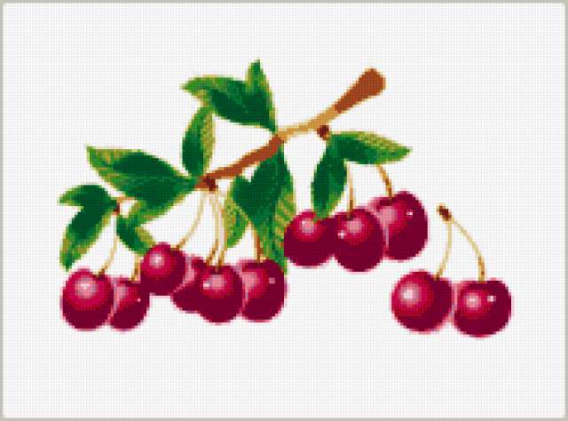 Ориентировочно так, схема вышивки «Вишенка», созданная автором Eddy, будет выглядеть при отшиве на канве. Размер данной вышивки равен 190x141 крестов, при этом используется 30 цветов. Ключевые слова, по которым можно найти эту схему: кухня, натюрморт, ягода, вишня. Также, вы можете взглянуть на оригинальную картинку, соответствующую данной схеме вышивки.