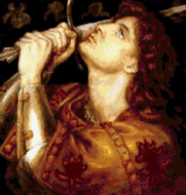 Ориентировочно так, схема вышивки «Воин с мечом», созданная автором alena4, будет выглядеть при отшиве на канве. Размер данной вышивки равен 181x190 крестов, при этом используется 61 цветов. Ключевые слова, по которым можно найти эту схему: воин, рыцарь, мужчина, юноша, картина. Также, вы можете взглянуть на оригинальную картинку, соответствующую данной схеме вышивки.