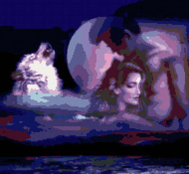 Ориентировочно так, схема вышивки «Вой волка», созданная автором 17051965, будет выглядеть при отшиве на канве. Размер данной вышивки равен 190x175 крестов, при этом используется 24 цветов. Ключевые слова, по которым можно найти эту схему: картинка. Также, вы можете взглянуть на оригинальную картинку, соответствующую данной схеме вышивки.