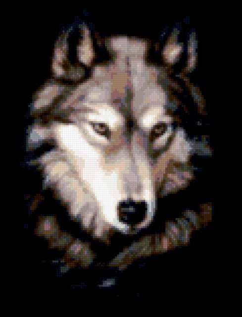 Ориентировочно так, схема вышивки «Волк 1», созданная автором lilya0505, будет выглядеть при отшиве на канве. Размер данной вышивки равен 120x157 крестов, при этом используется 32 цветов. К несчастью, автор не назначил для схемы ключевые слова. Также, вы можете взглянуть на оригинальную картинку, соответствующую данной схеме вышивки.