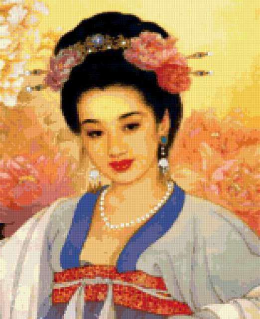 Ориентировочно так, схема вышивки «Восток», созданная автором dect81, будет выглядеть при отшиве на канве. Размер данной вышивки равен 155x190 крестов, при этом используется 74 цветов. Ключевые слова, по которым можно найти эту схему: Восток, девушка. Также, вы можете взглянуть на оригинальную картинку, соответствующую данной схеме вышивки.