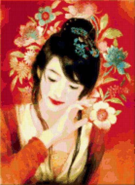 Ориентировочно так, схема вышивки «Восток», созданная автором dect81, будет выглядеть при отшиве на канве. Размер данной вышивки равен 139x190 крестов, при этом используется 69 цветов. Ключевые слова, по которым можно найти эту схему: Восток, девушка. Также, вы можете взглянуть на оригинальную картинку, соответствующую данной схеме вышивки.
