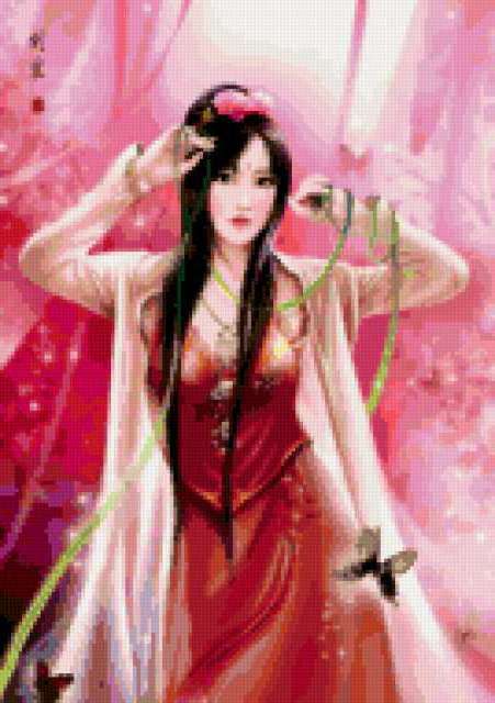 Ориентировочно так, схема вышивки «Восток», созданная автором kolst, будет выглядеть при отшиве на канве. Размер данной вышивки равен 134x190 крестов, при этом используется 74 цветов. Ключевые слова, по которым можно найти эту схему: восток, пагода.зима, китай, япония. Также, вы можете взглянуть на оригинальную картинку, соответствующую данной схеме вышивки.