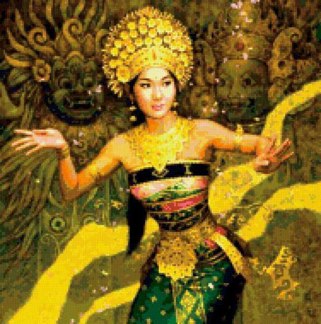 Ориентировочно так, схема вышивки «Восток», созданная автором vaso, будет выглядеть при отшиве на канве. Размер данной вышивки равен 188x190 крестов, при этом используется 66 цветов. Ключевые слова, по которым можно найти эту схему: искуство, картина, восток. Также, вы можете взглянуть на оригинальную картинку, соответствующую данной схеме вышивки.