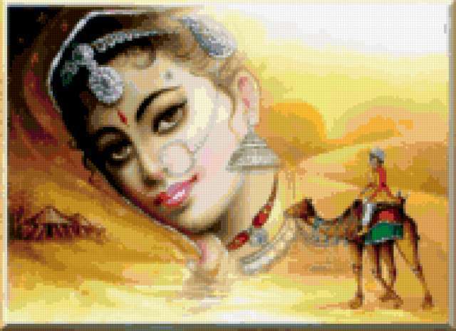 Ориентировочно так, схема вышивки «Восток», созданная автором nataha2582, будет выглядеть при отшиве на канве. Размер данной вышивки равен 190x138 крестов, при этом используется 83 цветов. Ключевые слова, по которым можно найти эту схему: восток. Также, вы можете взглянуть на оригинальную картинку, соответствующую данной схеме вышивки.