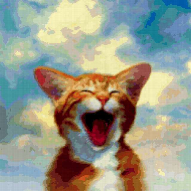 Ориентировочно так, схема вышивки «Вот такое рыжее счастье», созданная автором lucha, будет выглядеть при отшиве на канве. Размер данной вышивки равен 190x190 крестов, при этом используется 78 цветов. Ключевые слова, по которым можно найти эту схему: коты. Также, вы можете взглянуть на оригинальную картинку, соответствующую данной схеме вышивки.
