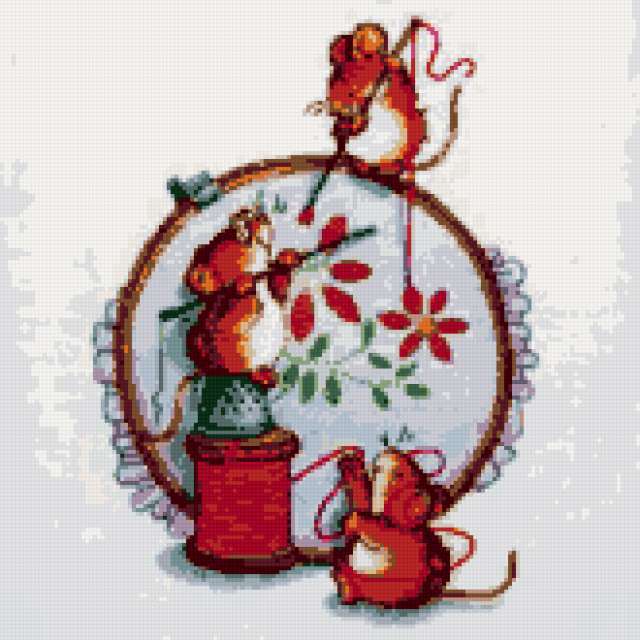 Ориентировочно так, схема вышивки «Вышивальщицы», созданная автором poltanya, будет выглядеть при отшиве на канве. Размер данной вышивки равен 165x165 крестов, при этом используется 28 цветов. Ключевые слова, по которым можно найти эту схему: вышивка, рукодельницы, мышки, смешные картинки, детские сюжеты, картина. Также, вы можете взглянуть на оригинальную картинку, соответствующую данной схеме вышивки.