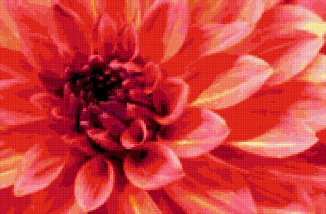 Ориентировочно так, схема вышивки «Георгин», созданная автором palena29, будет выглядеть при отшиве на канве. Размер данной вышивки равен 190x125 крестов, при этом используется 35 цветов. Ключевые слова, по которым можно найти эту схему: флора, цветы. Также, вы можете взглянуть на оригинальную картинку, соответствующую данной схеме вышивки.
