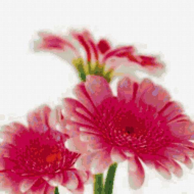 Ориентировочно так, схема вышивки «Герберы», созданная автором palena29, будет выглядеть при отшиве на канве. Размер данной вышивки равен 190x190 крестов, при этом используется 62 цветов. Ключевые слова, по которым можно найти эту схему: флора, цветы. Также, вы можете взглянуть на оригинальную картинку, соответствующую данной схеме вышивки.