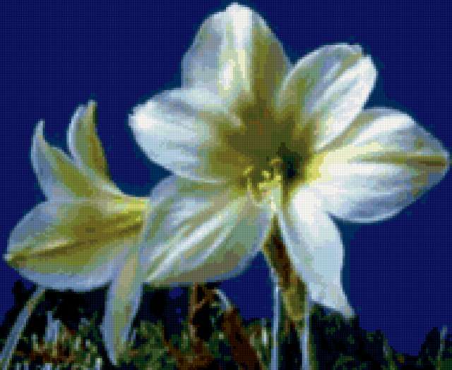 Ориентировочно так, схема вышивки «Гиппеаструм», созданная автором flip-flop, будет выглядеть при отшиве на канве. Размер данной вышивки равен 190x156 крестов, при этом используется 66 цветов. Ключевые слова, по которым можно найти эту схему: гиппеаструм, амариллис, цветы. Также, вы можете взглянуть на оригинальную картинку, соответствующую данной схеме вышивки.
