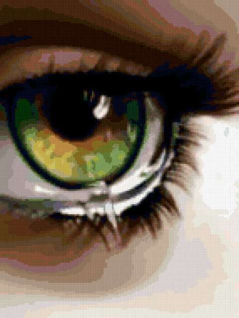Ориентировочно так, схема вышивки «Глаз 4», созданная автором alenka, будет выглядеть при отшиве на канве. Размер данной вышивки равен 143x190 крестов, при этом используется 67 цветов. Ключевые слова, по которым можно найти эту схему: глаза, человек, женщина, фэнтези, девушка, слеза. Также, вы можете взглянуть на оригинальную картинку, соответствующую данной схеме вышивки.