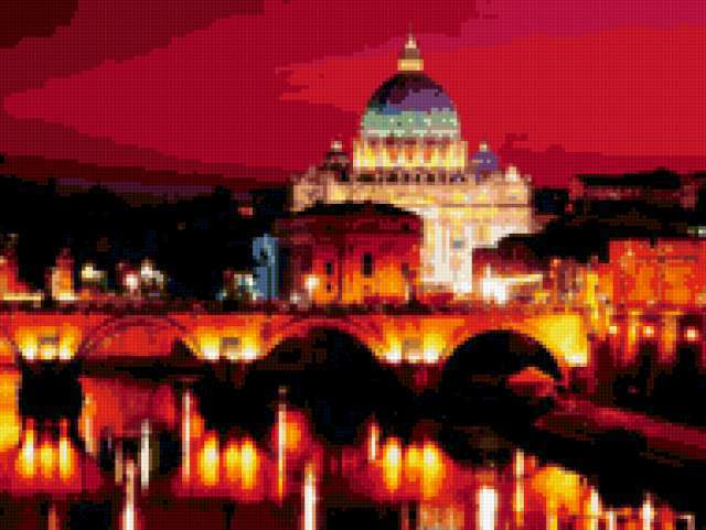 Ориентировочно так, схема вышивки «Города», созданная автором garmoniya255, будет выглядеть при отшиве на канве. Размер данной вышивки равен 190x143 крестов, при этом используется 54 цветов. Ключевые слова, по которым можно найти эту схему: города. Также, вы можете взглянуть на оригинальную картинку, соответствующую данной схеме вышивки.