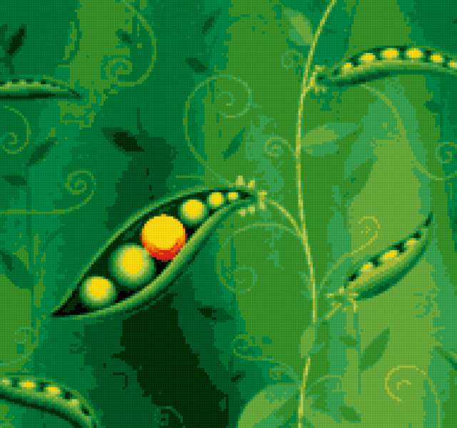 Ориентировочно так, схема вышивки «Горошенка», созданная автором 777Svetlana777, будет выглядеть при отшиве на канве. Размер данной вышивки равен 190x178 крестов, при этом используется 23 цветов. Ключевые слова, по которым можно найти эту схему: горох, зелень, трава, лес, дети, детская. Также, вы можете взглянуть на оригинальную картинку, соответствующую данной схеме вышивки.