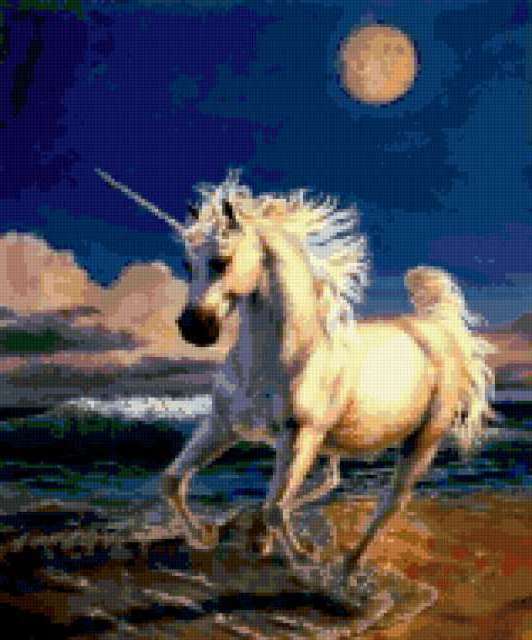 Ориентировочно так, схема вышивки «Грация», созданная автором Iolanta2012, будет выглядеть при отшиве на канве. Размер данной вышивки равен 158x190 крестов, при этом используется 70 цветов. Ключевые слова, по которым можно найти эту схему: единороги, кони, фэнтези, волшебство, красота. Также, вы можете взглянуть на оригинальную картинку, соответствующую данной схеме вышивки.