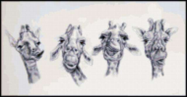 Ориентировочно так, схема вышивки «Гримасы», созданная автором Marina22, будет выглядеть при отшиве на канве. Размер данной вышивки равен 190x99 крестов, при этом используется 39 цветов. Ключевые слова, по которым можно найти эту схему: животные, жираф. Также, вы можете взглянуть на оригинальную картинку, соответствующую данной схеме вышивки.