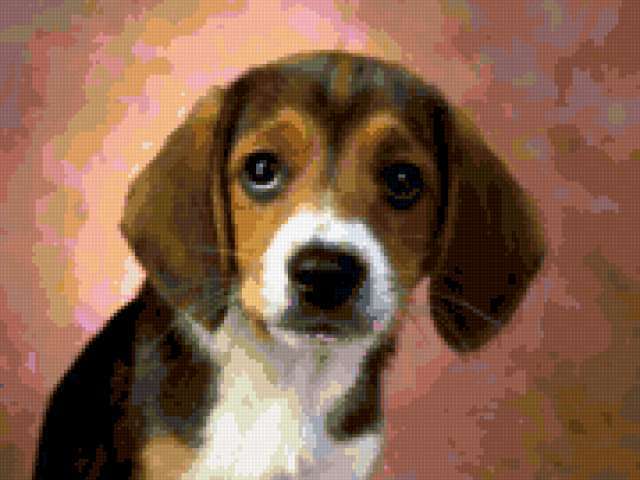 Ориентировочно так, схема вышивки «Грусть», созданная автором ksushundrik, будет выглядеть при отшиве на канве. Размер данной вышивки равен 180x135 крестов, при этом используется 66 цветов. Ключевые слова, по которым можно найти эту схему: собака, щенок, грусть. Также, вы можете взглянуть на оригинальную картинку, соответствующую данной схеме вышивки.
