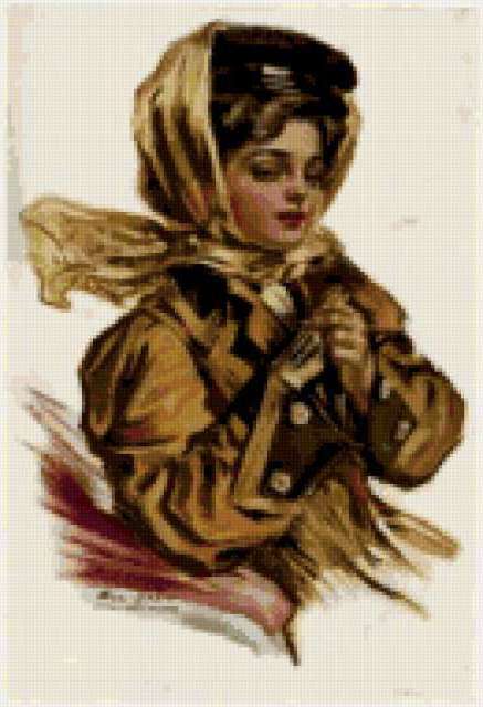 Ориентировочно так, схема вышивки «Дама», созданная автором Fardo, будет выглядеть при отшиве на канве. Размер данной вышивки равен 130x190 крестов, при этом используется 60 цветов. Ключевые слова, по которым можно найти эту схему: женщина, леди, дама. Также, вы можете взглянуть на оригинальную картинку, соответствующую данной схеме вышивки.