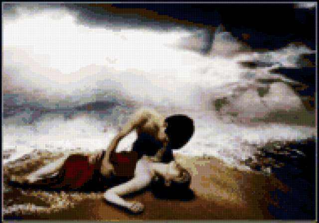 Ориентировочно так, схема вышивки «Двое....», созданная автором nataliasop, будет выглядеть при отшиве на канве. Размер данной вышивки равен 190x133 крестов, при этом используется 54 цветов. Ключевые слова, по которым можно найти эту схему: двое, пара. Также, вы можете взглянуть на оригинальную картинку, соответствующую данной схеме вышивки.