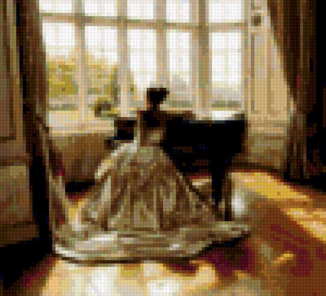 Ориентировочно так, схема вышивки «Девушка », созданная автором Giulia82, будет выглядеть при отшиве на канве. Размер данной вышивки равен 100x91 крестов, при этом используется 69 цветов. К несчастью, автор не назначил для схемы ключевые слова. Также, вы можете взглянуть на оригинальную картинку, соответствующую данной схеме вышивки.