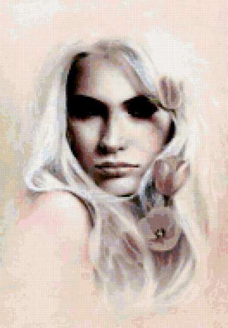 Ориентировочно так, схема вышивки «Девушка», созданная автором Fardo, будет выглядеть при отшиве на канве. Размер данной вышивки равен 132x190 крестов, при этом используется 65 цветов. Ключевые слова, по которым можно найти эту схему: женщина, леди, дама, девушка. Также, вы можете взглянуть на оригинальную картинку, соответствующую данной схеме вышивки.