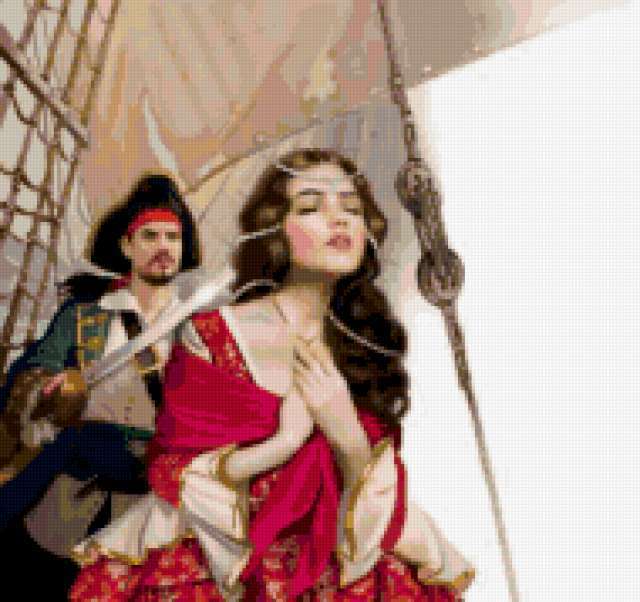 Ориентировочно так, схема вышивки «Девушки.Т.Дорониной», созданная автором vesnyshka63, будет выглядеть при отшиве на канве. Размер данной вышивки равен 190x179 крестов, при этом используется 72 цветов. Ключевые слова, по которым можно найти эту схему: девушка, живопись, паруса, пираты. Также, вы можете взглянуть на оригинальную картинку, соответствующую данной схеме вышивки.