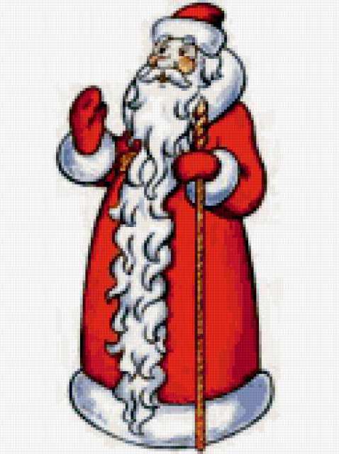 Ориентировочно так, схема вышивки «Дед мороз», созданная автором masyaska23, будет выглядеть при отшиве на канве. Размер данной вышивки равен 127x170 крестов, при этом используется 66 цветов. Ключевые слова, по которым можно найти эту схему: новый год. Также, вы можете взглянуть на оригинальную картинку, соответствующую данной схеме вышивки.