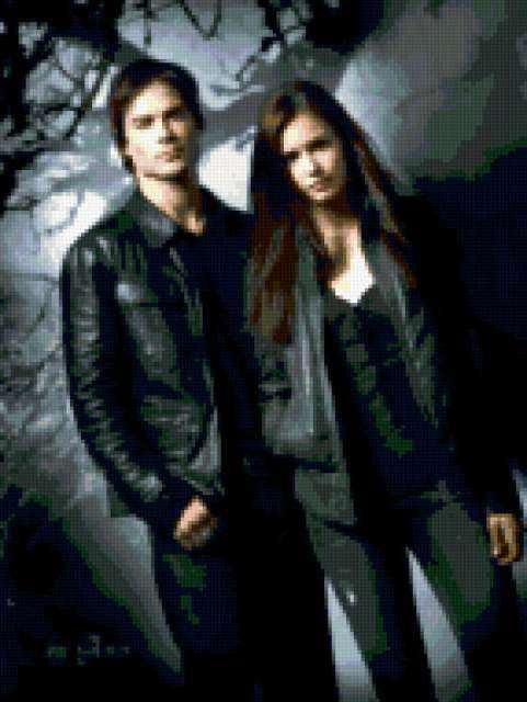 Ориентировочно так, схема вышивки «Деймон и елена», созданная автором natalianet2012, будет выглядеть при отшиве на канве. Размер данной вышивки равен 143x190 крестов, при этом используется 47 цветов. Ключевые слова, по которым можно найти эту схему: дневники вампира. Также, вы можете взглянуть на оригинальную картинку, соответствующую данной схеме вышивки.