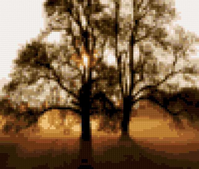 Ориентировочно так, схема вышивки «Дерево», созданная автором efendieva, будет выглядеть при отшиве на канве. Размер данной вышивки равен 100x85 крестов, при этом используется 22 цветов. Ключевые слова, по которым можно найти эту схему: природа, вечер. Также, вы можете взглянуть на оригинальную картинку, соответствующую данной схеме вышивки.