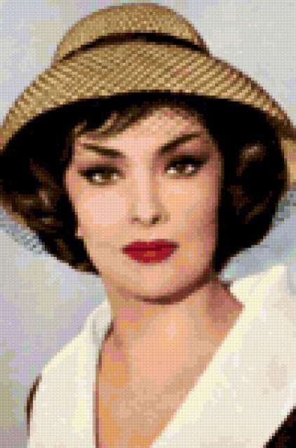 Ориентировочно так, схема вышивки «Джина Лолобриджида», созданная автором KatjaKozlovskaja, будет выглядеть при отшиве на канве. Размер данной вышивки равен 99x150 крестов, при этом используется 71 цветов. К несчастью, автор не назначил для схемы ключевые слова. Также, вы можете взглянуть на оригинальную картинку, соответствующую данной схеме вышивки.