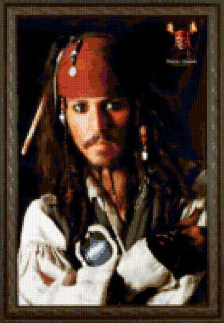 Ориентировочно так, схема вышивки «Джонни Депп», созданная автором xa00p3857, будет выглядеть при отшиве на канве. Размер данной вышивки равен 132x190 крестов, при этом используется 61 цветов. Ключевые слова, по которым можно найти эту схему: джонни депп, пираты, карибского моря, кино, постер, актер, человек, мужчина, джек воробей. Также, вы можете взглянуть на оригинальную картинку, соответствующую данной схеме вышивки.
