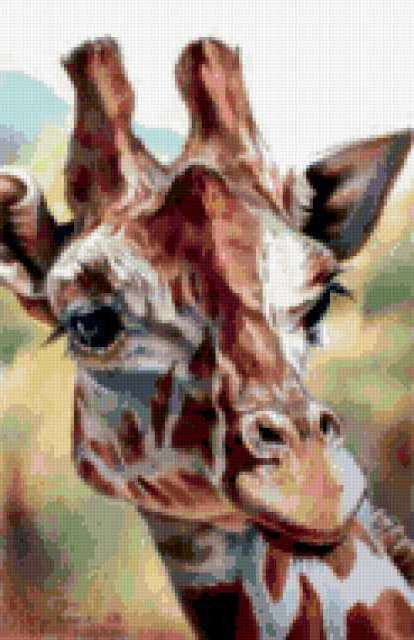 Ориентировочно так, схема вышивки «Длинношеее животное», созданная автором Marina22, будет выглядеть при отшиве на канве. Размер данной вышивки равен 123x190 крестов, при этом используется 81 цветов. Ключевые слова, по которым можно найти эту схему: животные, жираф. Также, вы можете взглянуть на оригинальную картинку, соответствующую данной схеме вышивки.