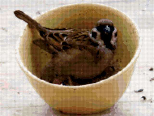 Ориентировочно так, схема вышивки «Добавка будет?», созданная автором malkinaiv, будет выглядеть при отшиве на канве. Размер данной вышивки равен 190x143 крестов, при этом используется 58 цветов. Ключевые слова, по которым можно найти эту схему: птицы, воробьи, посуда, юмор. Также, вы можете взглянуть на оригинальную картинку, соответствующую данной схеме вышивки.