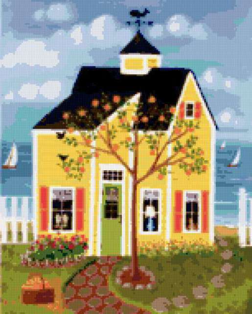 Ориентировочно так, схема вышивки «Домик 2», созданная автором eldi_22, будет выглядеть при отшиве на канве. Размер данной вышивки равен 153x190 крестов, при этом используется 51 цветов. Ключевые слова, по которым можно найти эту схему: домик. Также, вы можете взглянуть на оригинальную картинку, соответствующую данной схеме вышивки.