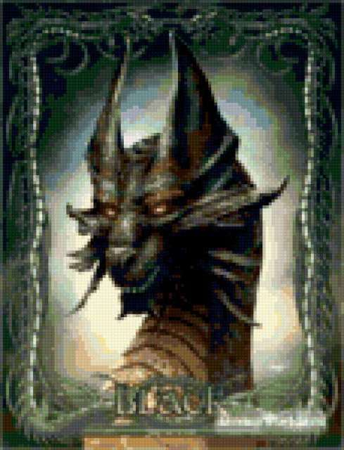 Ориентировочно так, схема вышивки «Дракон», созданная автором herjltkmybwf, будет выглядеть при отшиве на канве. Размер данной вышивки равен 114x149 крестов, при этом используется 56 цветов. Ключевые слова, по которым можно найти эту схему: фэнтези, дракон. Также, вы можете взглянуть на оригинальную картинку, соответствующую данной схеме вышивки.