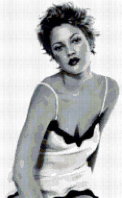 Ориентировочно так, схема вышивки «Дрю Бэрримор», созданная автором lenka007, будет выглядеть при отшиве на канве. Размер данной вышивки равен 117x190 крестов, при этом используется 16 цветов. Ключевые слова, по которым можно найти эту схему: дрю бэрримор, актриса, голливуд, девушка. Также, вы можете взглянуть на оригинальную картинку, соответствующую данной схеме вышивки.