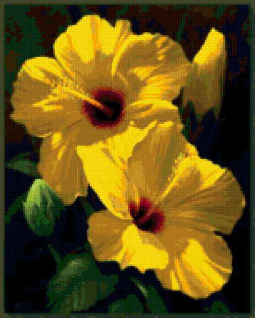 Ориентировочно так, схема вышивки «Желтые орхидеи», созданная автором lipo4ka, будет выглядеть при отшиве на канве. Размер данной вышивки равен 153x190 крестов, при этом используется 49 цветов. Ключевые слова, по которым можно найти эту схему: цветы, орхидеи. Также, вы можете взглянуть на оригинальную картинку, соответствующую данной схеме вышивки.