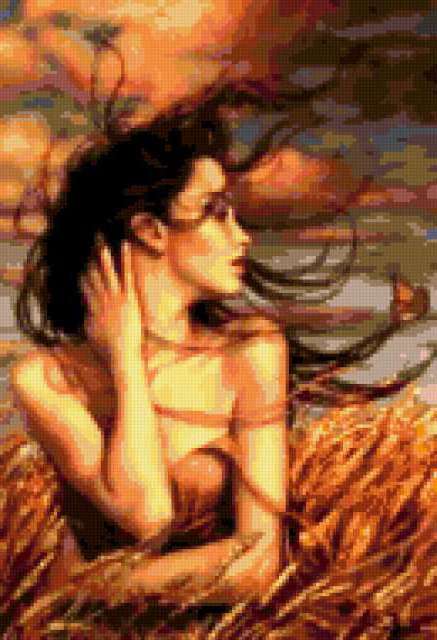 Ориентировочно так, схема вышивки «Женские портреты Лаури Бланк», созданная автором gala1966, будет выглядеть при отшиве на канве. Размер данной вышивки равен 130x190 крестов, при этом используется 42 цветов. К несчастью, автор не назначил для схемы ключевые слова. Также, вы можете взглянуть на оригинальную картинку, соответствующую данной схеме вышивки.