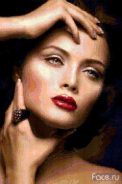 Ориентировочно так, схема вышивки «Женщина», созданная автором VA903M, будет выглядеть при отшиве на канве. Размер данной вышивки равен 127x190 крестов, при этом используется 54 цветов. Ключевые слова, по которым можно найти эту схему: девушка, лицо, красота, женщина. Также, вы можете взглянуть на оригинальную картинку, соответствующую данной схеме вышивки.