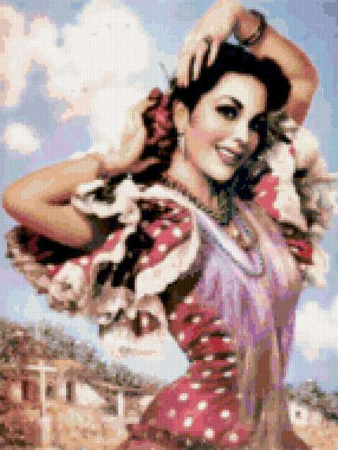 Ориентировочно так, схема вышивки «Женщины Мексики», созданная автором lavrentevaalla, будет выглядеть при отшиве на канве. Размер данной вышивки равен 143x190 крестов, при этом используется 78 цветов. К несчастью, автор не назначил для схемы ключевые слова. Также, вы можете взглянуть на оригинальную картинку, соответствующую данной схеме вышивки.