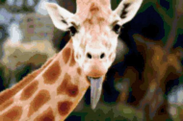 Ориентировочно так, схема вышивки «Жираф», созданная автором Karel, будет выглядеть при отшиве на канве. Размер данной вышивки равен 190x126 крестов, при этом используется 76 цветов. Ключевые слова, по которым можно найти эту схему: жираф, животные, звери. Также, вы можете взглянуть на оригинальную картинку, соответствующую данной схеме вышивки.