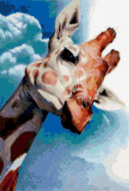 Ориентировочно так, схема вышивки «Жираф», созданная автором azazaz, будет выглядеть при отшиве на канве. Размер данной вышивки равен 129x190 крестов, при этом используется 71 цветов. Ключевые слова, по которым можно найти эту схему: жираф, животные, африка. Также, вы можете взглянуть на оригинальную картинку, соответствующую данной схеме вышивки.