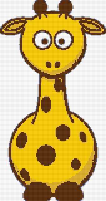 Ориентировочно так, схема вышивки «Жираф», созданная автором alelika, будет выглядеть при отшиве на канве. Размер данной вышивки равен 85x160 крестов, при этом используется 7 цветов. Ключевые слова, по которым можно найти эту схему: жираф, животные. Также, вы можете взглянуть на оригинальную картинку, соответствующую данной схеме вышивки.