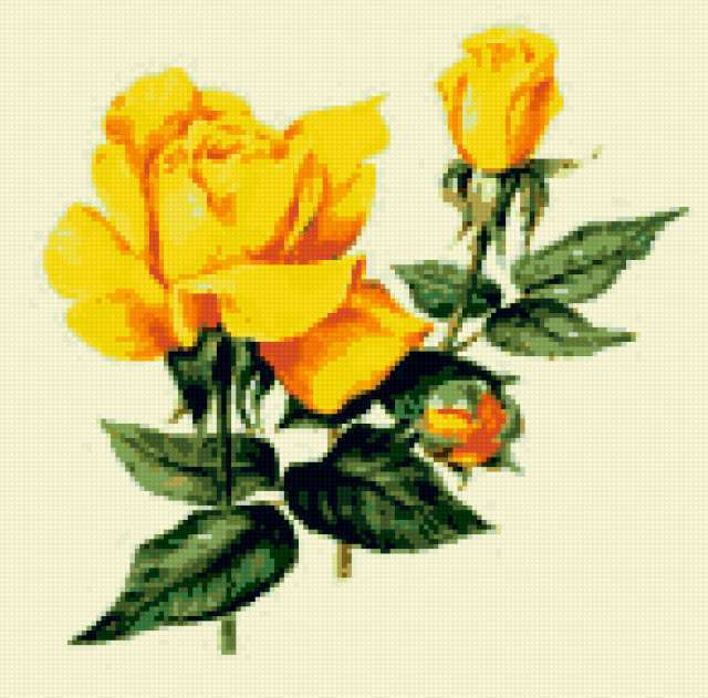 Ориентировочно так, схема вышивки «Жёлтые розы», созданная автором poltanya, будет выглядеть при отшиве на канве. Размер данной вышивки равен 147x145 крестов, при этом используется 26 цветов. Ключевые слова, по которым можно найти эту схему: жёлтые розы, розы, роза, душистые розы, цветы, красота, бутоны, флора, букет. Также, вы можете взглянуть на оригинальную картинку, соответствующую данной схеме вышивки.