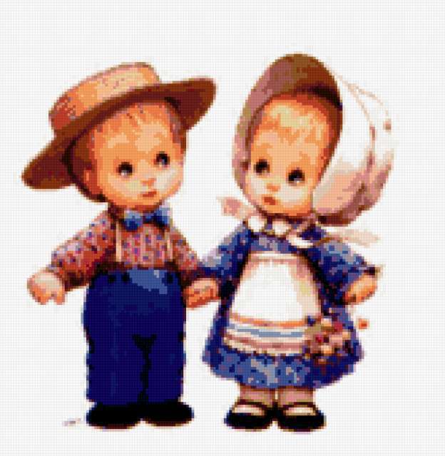 Ориентировочно так, схема вышивки «Забавные детки», созданная автором poltanya, будет выглядеть при отшиве на канве. Размер данной вышивки равен 165x169 крестов, при этом используется 37 цветов. Ключевые слова, по которым можно найти эту схему: забавные детки, детки, малыши, детские сюжеты, детишки, красота, игрушки, картины, мальчик, девочка. Также, вы можете взглянуть на оригинальную картинку, соответствующую данной схеме вышивки.