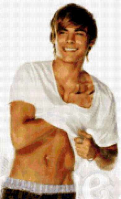 Ориентировочно так, схема вышивки «Зак Эфрон», созданная автором Nadena_love, будет выглядеть при отшиве на канве. Размер данной вышивки равен 110x180 крестов, при этом используется 69 цветов. Ключевые слова, по которым можно найти эту схему: зак, мужчина. Также, вы можете взглянуть на оригинальную картинку, соответствующую данной схеме вышивки.