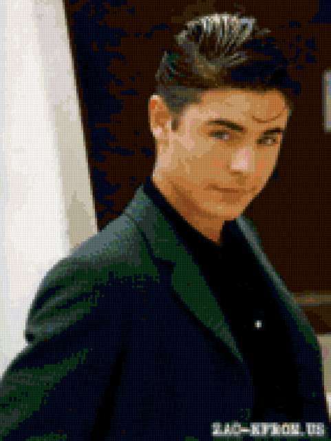 Ориентировочно так, схема вышивки «Зак Эфрон», созданная автором Nadena_love, будет выглядеть при отшиве на канве. Размер данной вышивки равен 143x190 крестов, при этом используется 59 цветов. Ключевые слова, по которым можно найти эту схему: зак, мужчина, актер, звезда. Также, вы можете взглянуть на оригинальную картинку, соответствующую данной схеме вышивки.